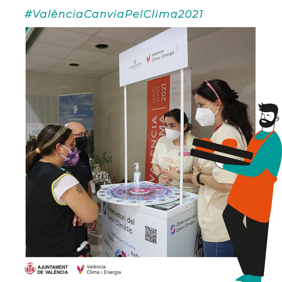 Para hacerlo posible, durante la semana se han colocado puntos informativos en los mercados de Algirós, Jerusalén, Central y Russafa. El Observatori del Canvi Climàtic de la Fundació València Clima i Energia, el Gabinet de Didàctica del Jardí Botànic de la Universitat de València y Mercavalència son los encargados de transmitir a clientes y vendedores de los mercados el mensaje de València Canvia Pel Clima!. Un mensaje que no es otro que la apuesta por la alimentación sostenible, centrada en productos de proximidad, temporada y kilómetro cero para ayudar a mitigar el cambio climático.